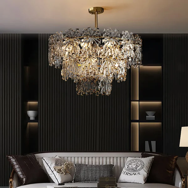 Crese Modern 9-Light Snowflake Tiered Glass Chandelier in Brass